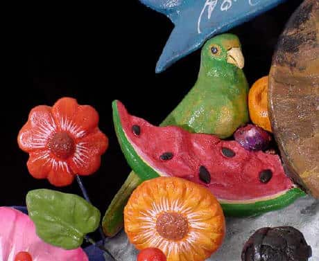This impressive tree of life , Arbol de la Vida was created by Mexican artist Tiburcio Soteno showing scenes of Frida Kaklo’s world known paintings such as: Las Dos Fridas (The Two Fridas), Naturaleza Muerta Con Perico (Still Life With Parrot ),Flor de la Vida ( The Flower of Life ) Diego y Frida ( Diego and Frida), La Tierra Misma ( The Earth Itslef )