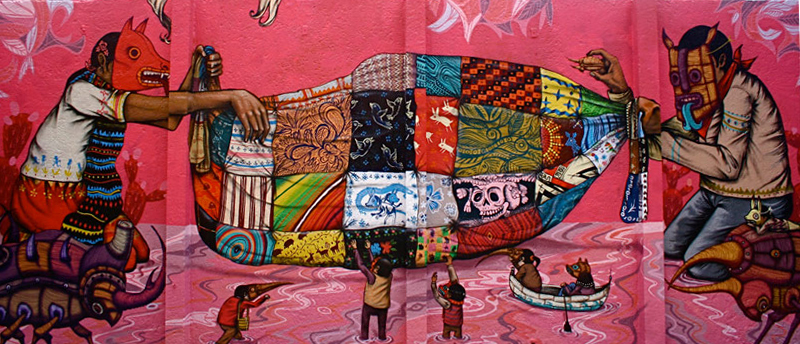 Many young artists are crossing over from spectacular street art to contemporary murals. Some of these great street artists are Edgar Flores Saner, Farid Rueda, Favio Martinez Curiot.
