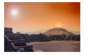 To ancient Mexicans, Teotihuacan was a holy city. Located a 40 miles northeast of Mexico City, it was the birthplace of the fifth sun. “The world had been destroyed four times. To bring forth the rise of a new sun the gods gathered at Teotihuacan.